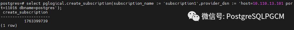 最后在订阅者节点上,您可以创建订阅,它将在后台启动同步和复制过程: