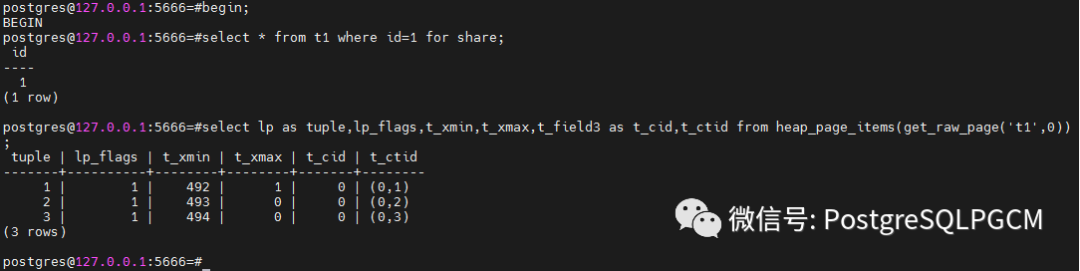执行for share后,上图t_xmax变成了1,为什么会是1呢?