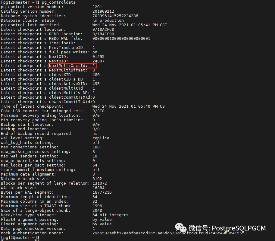 控制文件中有一行NextMultiXactId: 1,这个就是多事物ID,表示有多个事务锁定了这一行,也就是在session2中看到的t_xmax的值,这次多事物结束后NextMultiXactId会加1。