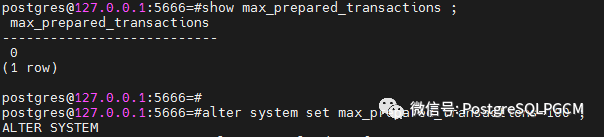 要演示2PC事务,首先要修改max_prepared_transactions参数大于0,官方手册建议与max_connections一样。