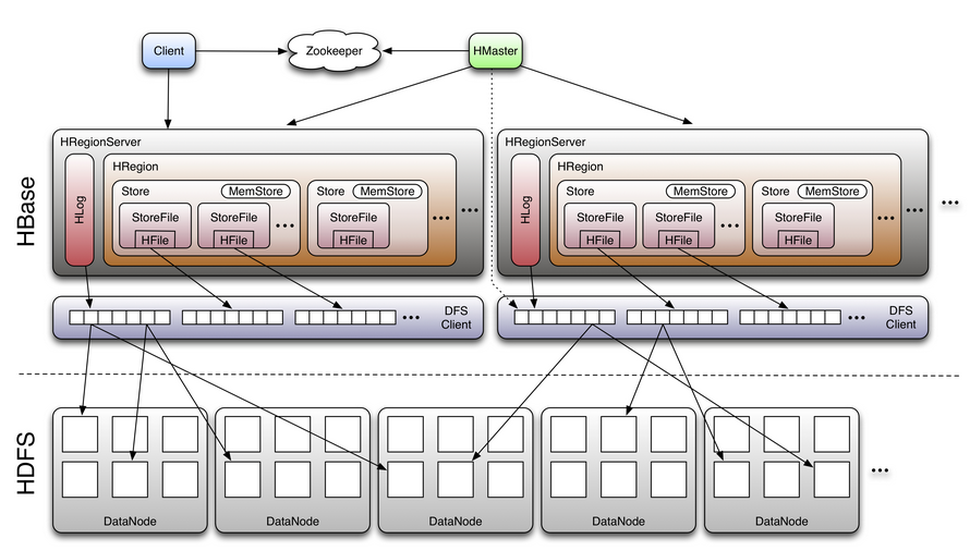 3、存储模式:关系数据库是基于行模式存储的。HBase是基于列存储的。