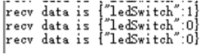 云平台发送过来的时一串 json 字符串,key 为“ledSwitch”,值为 1 时,可以看到开发板的 LED 灯亮,值为 0 时,开发板 LED 灯灭。