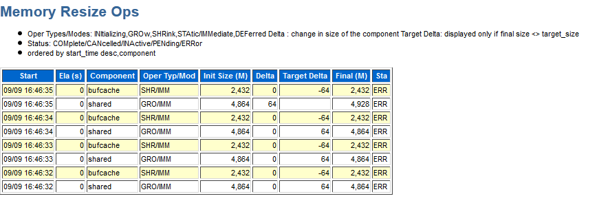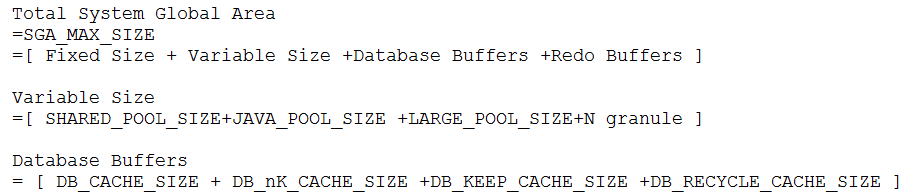 注意:SGA动态内存管理(ASMM)时,内存之间的移动是以GRANULE为单位的。