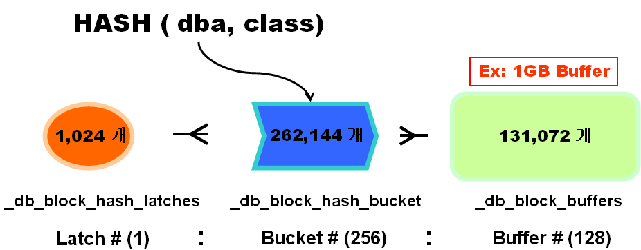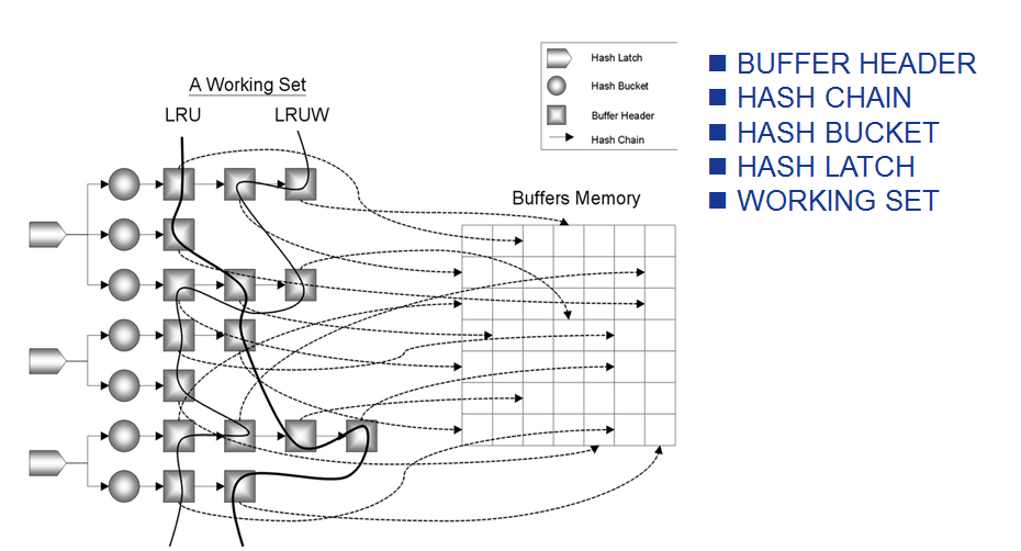 Ø会话通过计算数据块(RDBA,CLASS)的HASH值就可以快速定位数据块