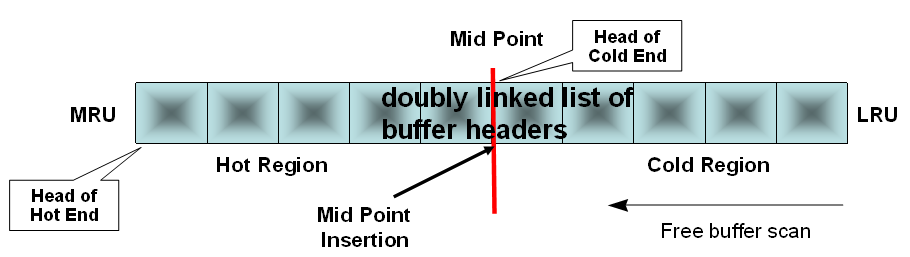 •数据块的buffer header只能挂载在LRU列或者LRU-W列的其中一个列