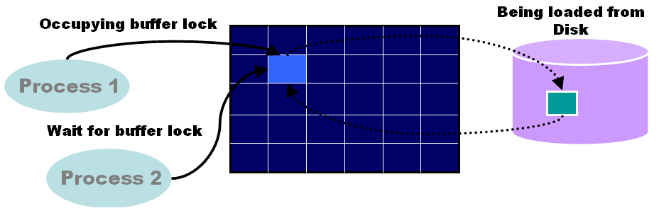 提示:前台进程和DBWR进程可以有多个,所以Buffer Cache中需要有latch来保护并发性访问