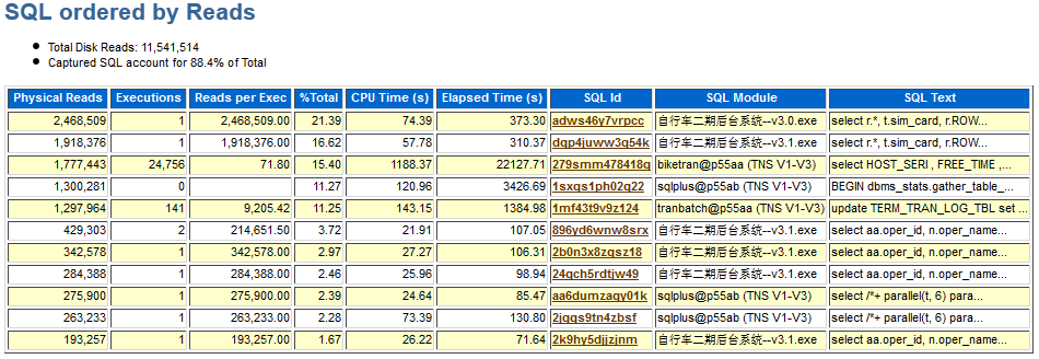 Ø低效的SQL。多个并发进程同时大范围扫描表和索引