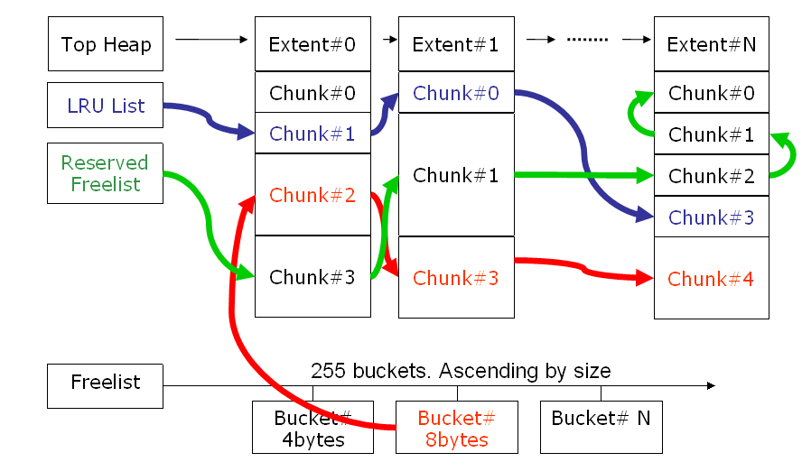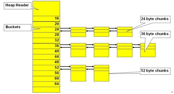 •分割产生的空闲CHUNK或者释放的CHUNK,会被挂载到相应的bucket上