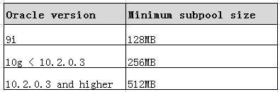 Oracle设置SUBPOOL大小的数量取值如下: