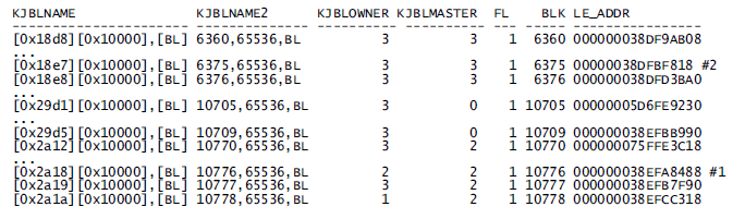 •跟BUFFER CACHE的访问机制类似,ORACLE会使用HASH 算法来决定每个BLOCK的MASTER是哪个节点(可以查询内部视图x$kjbl、x$le)