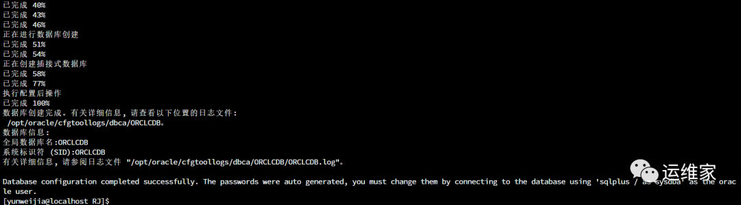 [yunweijia@localhost RJ]$ sudo etc/init.d/oracledb_ORCLCDB-19c configure