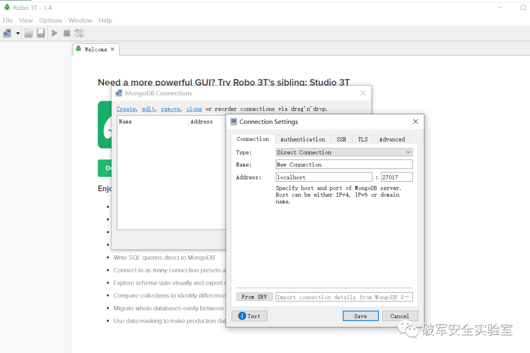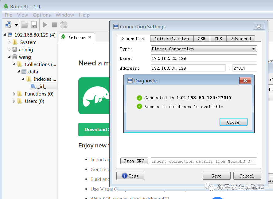 3.0及之后版本,使用 --auth参数启动后,无账号则本地和远程均无权限访问数据库