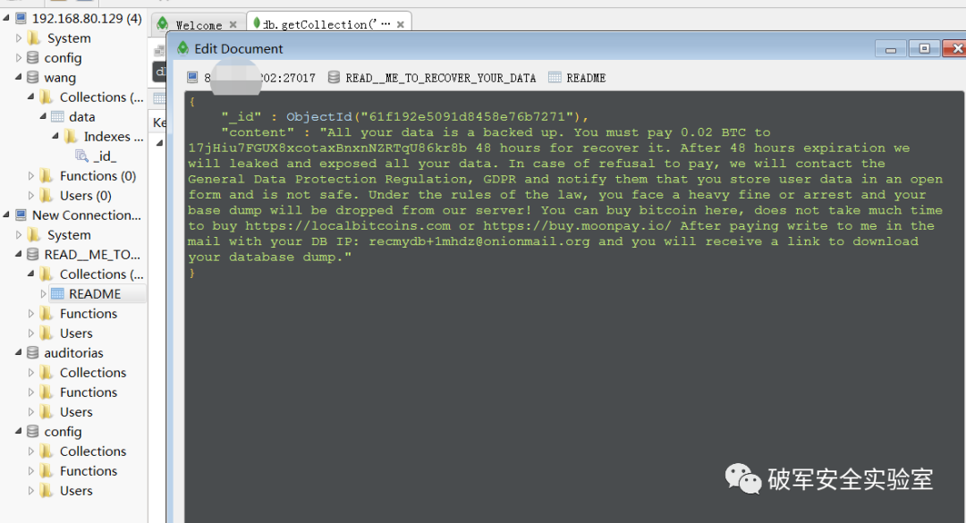 Mongodb服务安装后,默认未开启权限验证,如果服务监听在0.0.0.0,则可以远程未授权访问数据库