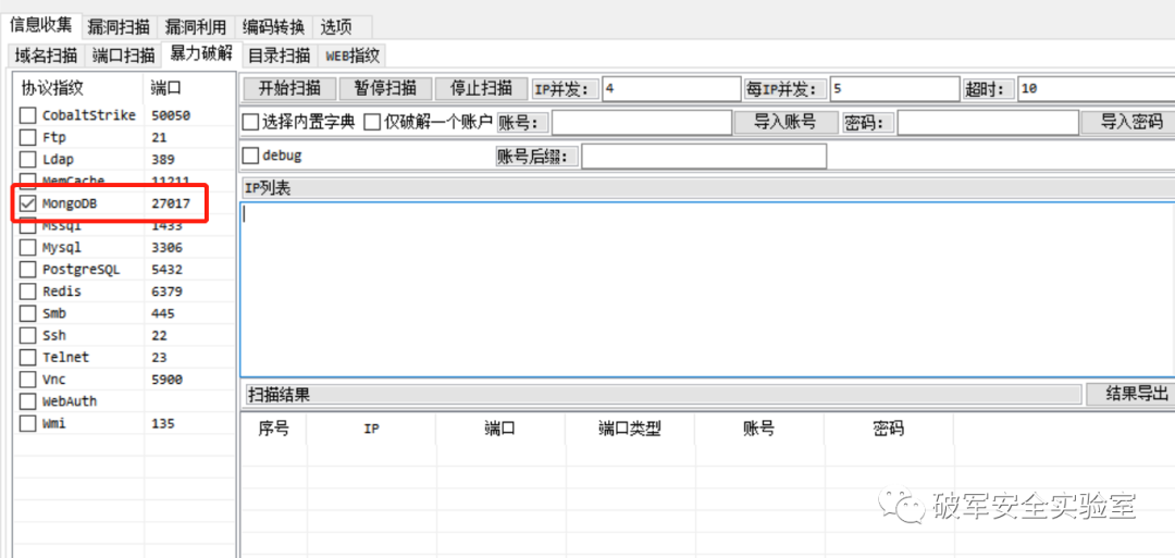 use auxiliary/scanner/mongodb/mongodb_loginset rhosts 192.168.90.0/24set threads 10exploit