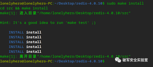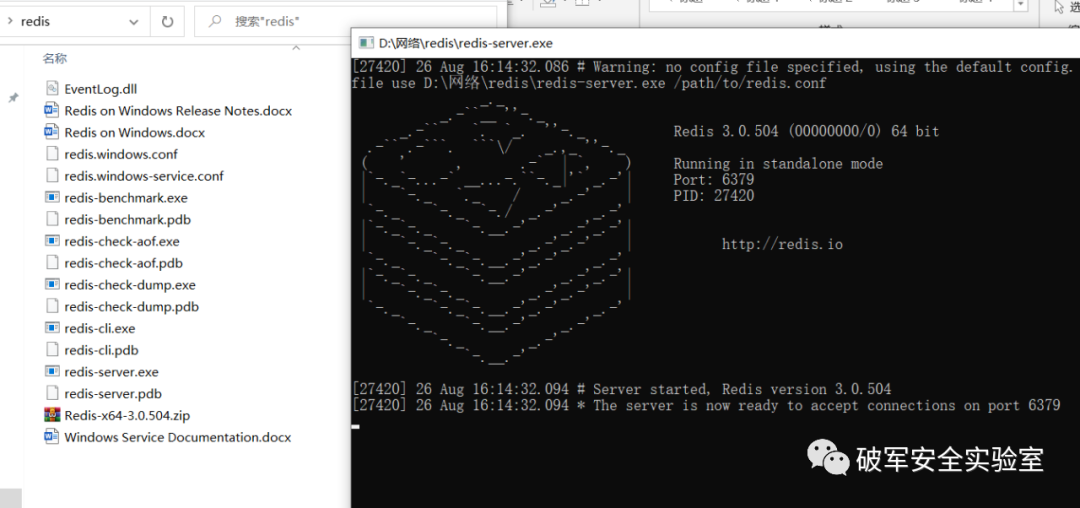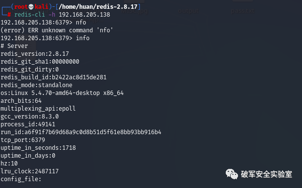 注:由于redis-4.0.10版本中配置文件默认已经启用了保护,下面将使用redis-2.8.17,重复上面的步骤就行 0.0