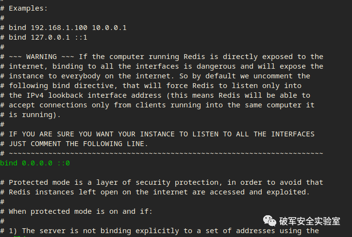 vim home/lonelyhero/Desktop/redis-4.0.10/redis.confbind 0.0.0.0 ::0
