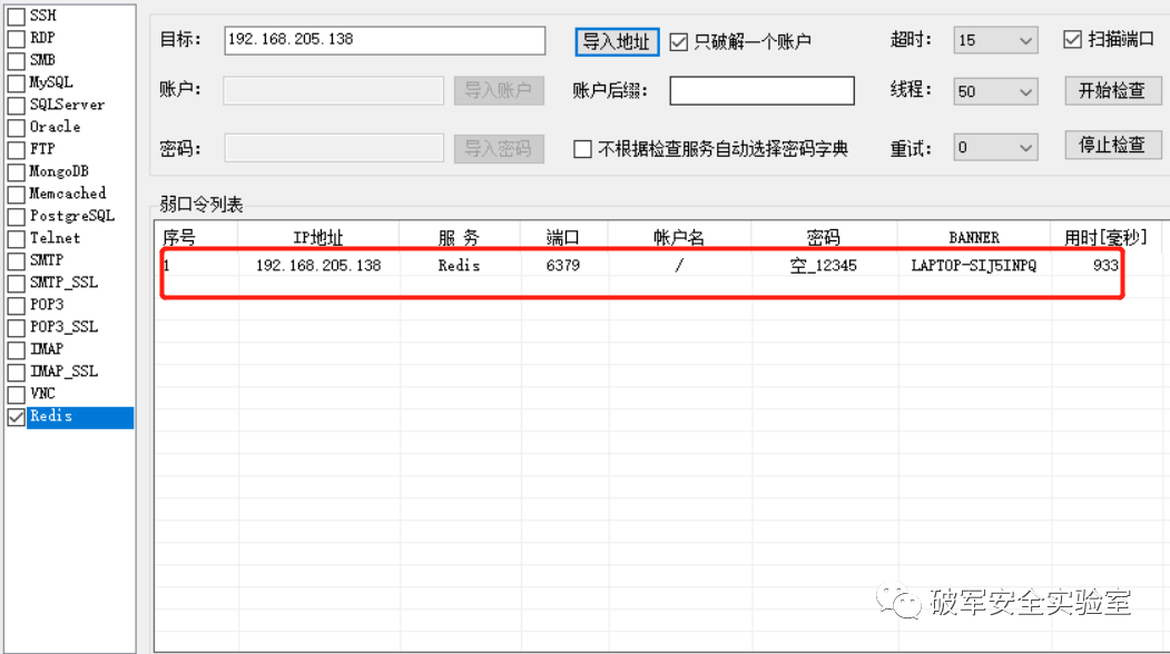 Goby扫一波端口,也可爆破redis弱口令,发现Redis未授权访问漏洞