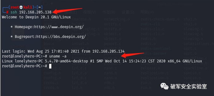 攻击者:kali 192.168.205.134靶机:deepin192.168.205.138
