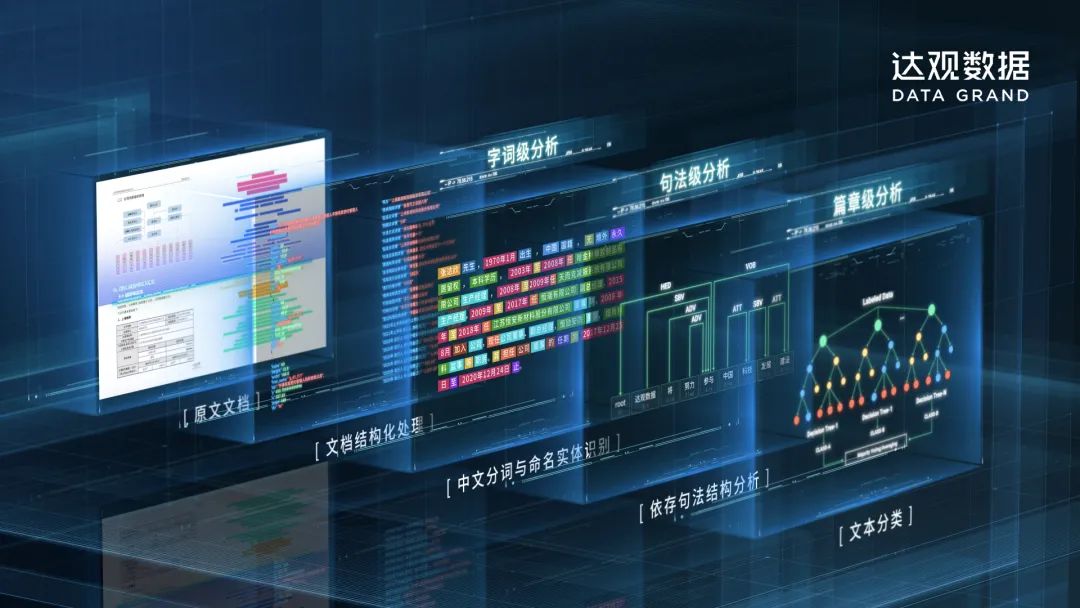 达观数据在文本语义分析与知识图谱研发方面进行了深度研发,申请了100余项国家技术发明专利,尤其在文档版面自动分析、语义自动理解、票证自动识别、文书审阅和起草写作等方向做出了很多技术创新,并首创了“智能RPA”系统,将机器人流程自动化RPA与智能文本IDP相融合,广泛用于企业内的业务文档审阅、搜索推荐、资料报送、文字分析等办公超自动化场景,为众多500强知名企业客户的“智慧办公”创造了价值。