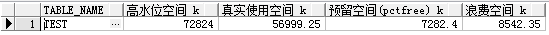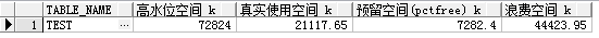 SELECT table_name, ROUND ((blocks * 8), 2) "高水位空间 k",ROUND ((num_rows * avg_row_len 1024), 2) "真实使用空间 k",ROUND ((blocks * 10 100) * 8, 2) "预留空间(pctfree) k",ROUND (( blocks * 8- (num_rows * avg_row_len 1024)- blocks * 8 * 10 100),2) "浪费空间 k"FROM dba_tablesWHERE table_name = 'TEST';