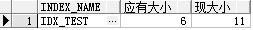 select index_name, c.NMB "应有大小", d.SMB "现大小"from (select index_name,round((select num_rows numrowsfrom dba_tableswhere table_name = upper('TEST')AND owner = upper('TEST')) /((8192 - 819.2 - 4 - 20 - 72 - 32) /((sum(AVG_COL_LEN)) + 2 + 18)) * 8192 / 1024 / 1024) NMBfrom (SELECT b.index_name index_name,a.column_name,a.AVG_COL_LEN AVG_COL_LENFROM dba_tab_columns a,(select b.index_name, b.column_name, b.index_ownerfrom dba_ind_columns bwhere b.table_name = upper('TEST')and B.INDEX_OWNER = upper('TEST')order by b.index_name) bWHERE a.TABLE_NAME = upper('TEST')AND A.OWNER = upper('TEST')and a.column_name = b.column_nameorder by b.index_name)group by index_name) c,(SELECT segment_name, round(sum(bytes) / 1024 / 1024) SMBFROM dba_segmentsWHERE OWNER = upper('TEST')group by segment_name) dwhere c.index_name = d.segment_name;