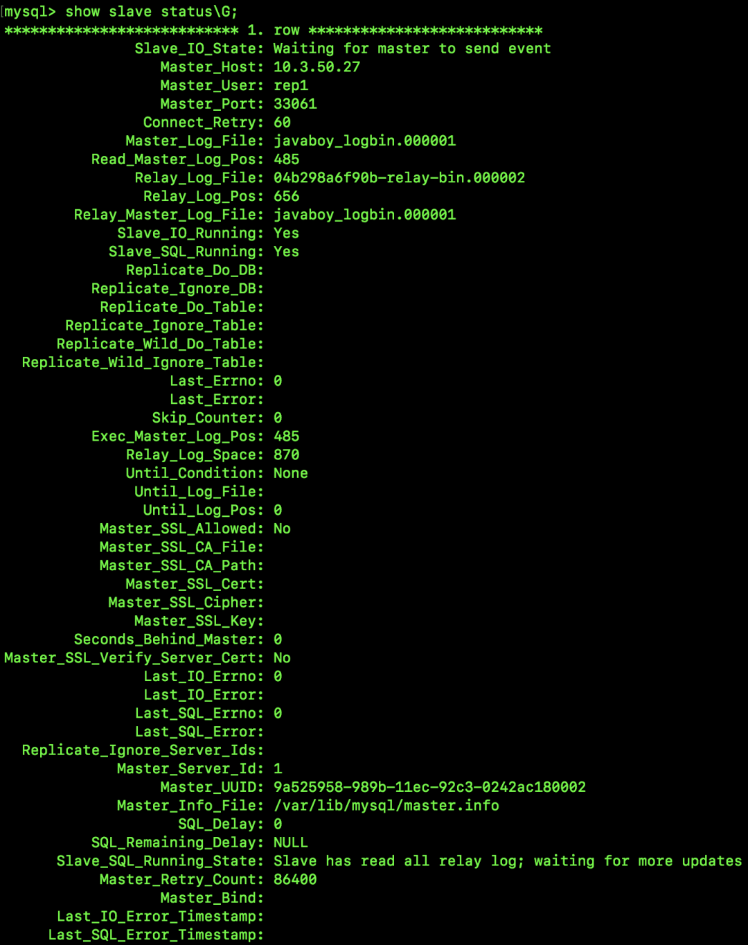 change master to master_host='10.3.50.27',master_port=33061,master_user='rep1',master_password='123',master_log_file='javaboy_logbin.000001',master_log_pos=154,get_master_public_key=1;