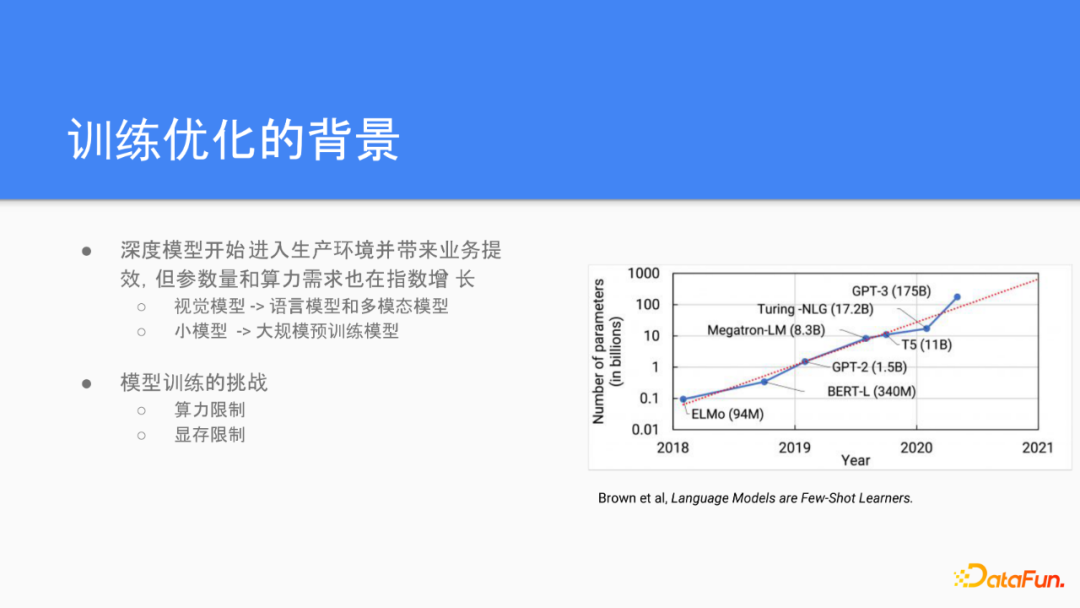 我们先回顾一下我们为什么需要做分布式的训练,以及我们作为一个平台为什么需要关注这个问题。最近几年我们可以看到深度模型最开始是在学术界的各个任务上取得了一些SOTA的突破,我们最近几年也看到这些应用开始渗入到企业级的用户,并且带来实实在在的业的提效。