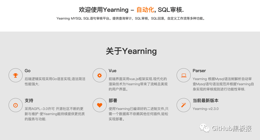 今天要推荐的工具 Yearning,是一个开箱即用的 MySQL Web 审核平台,提供查询审计,SQL审核,SQL回滚,自定义工作流等多种功能。