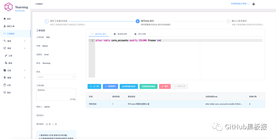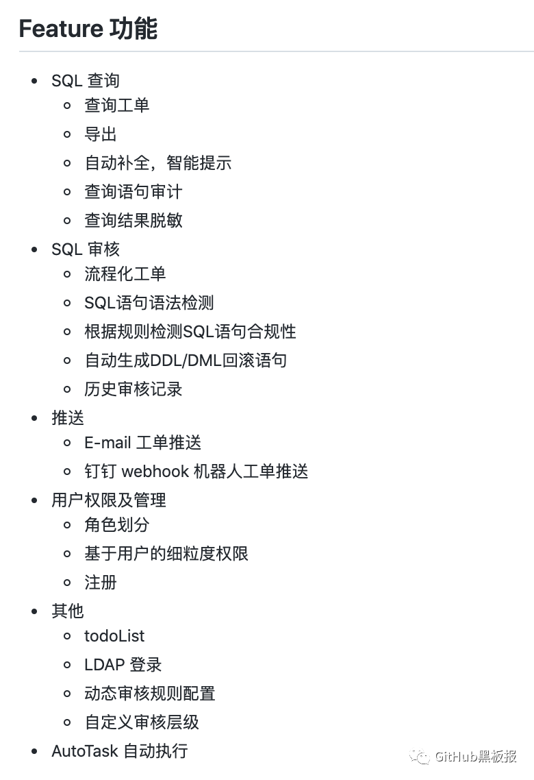 1、自动化SQL语句审核,可对SQL进行自动检测并执行