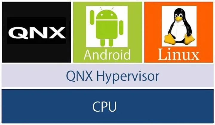 一辆汽车上众多硬件设备的应用场景不同,对实时性的要求也不同,所以往往需要使用多个操作系统来相互配合。为了解决一套硬件安装多个操作系统的问题,后来 QNX 推出了一种硬件虚拟化技术,叫做 Hypervisor。