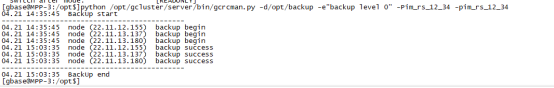 python /opt/gcluster/server/bin/gcrcman.py -d/opt/backup -e"backup level 0" -PyourCode -pyourCode |