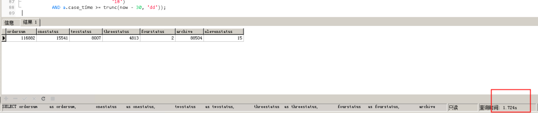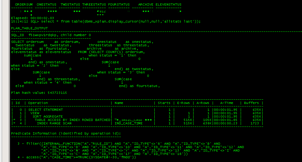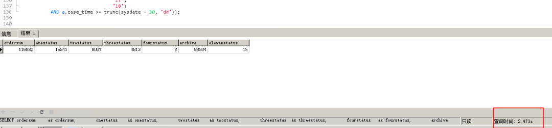 再次执行查询语句,返回时间2.4秒,耗时基本和oracle持平,通知应用再次测试,反馈没有问题。