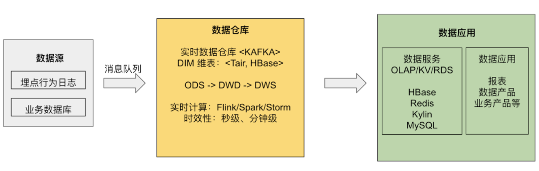进入 21 世纪,随着计算技术的发展、以及整体算力的提升,决策的主体逐渐从人工控制转变为计算机算法,出现了实时推荐、实时监控分析等需求,对应的决策周期时间由天级逐步变为秒级,在这些场景下,实时数仓应运而生。当前的实时数仓主要有三种架构:Lambda 架构、Kappa 架构以及实时 OLAP 变体架构:1. Lambda 架构是指在离线数仓的基础上叠加了实时数仓部分,使用流式引擎处理实时性较高的数据,最后将离线和在线的结果统一供应用使用。2. Kappa 架构则移除了离线数仓部分,全部使用实时数据生产。这种架构统一了计算引擎,降低了开发成本。