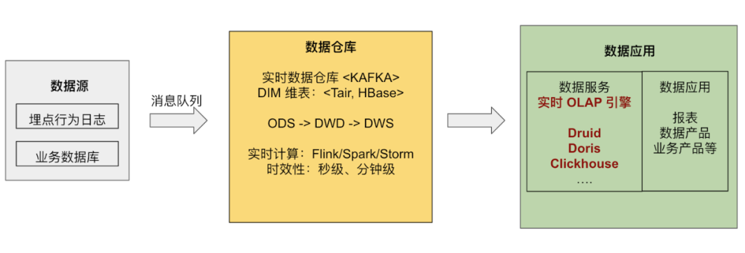 3. 随着实时 OLAP 技术的提升,一个新的实时架构被提出,暂时被称为“实时 OLAP 变体”。简单来说,就是将一部分计算压力从流式计算引擎转嫁到实时 OLAP 分析引擎上,以此进行更加灵活的实时数仓计算。