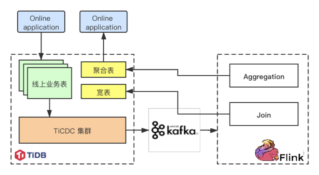 TiCDC 是一款通过拉取 TiKV 变更日志实现的 TiDB 增量数据同步工具,可以利用其将 TiDB 的变更数据输出到消息队列中,再由 Flink 提取。