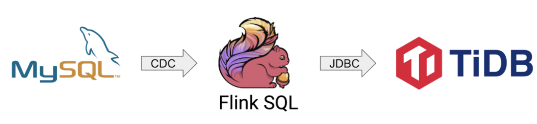 这个架构的优点是非常简洁方便,在 MySQL 和 TiDB 都准备好对应数据库和表的情况下,可以通过只编写 Flink SQL 来完成任务的注册与提交。读者可以在本文末尾的【在 docker-compose 中进行尝试】一节中尝试此架构。