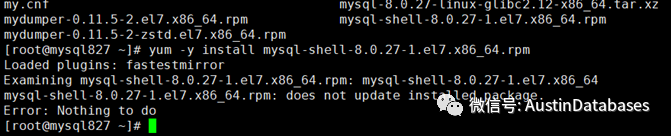 1 直接运行 yum -y install mysql-shell-8.0.27-1.el7.x86_64.rpm
