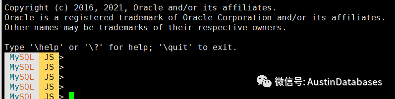 2 在安装完毕后,直接运行 mysqlsh 就进入到对应的环境中