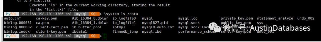 6 在MYSQL 中运行一些LINUX 系统的命令,这个功能对于时长需要在系统和数据库之间进行工作的人比较方便