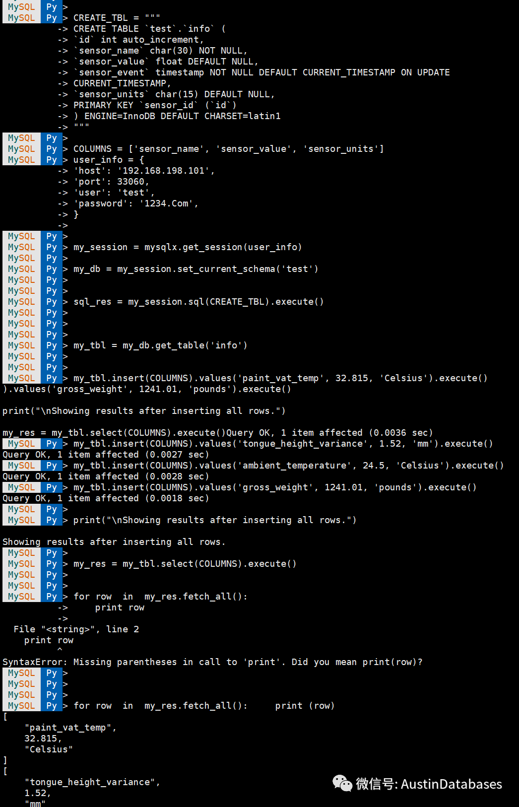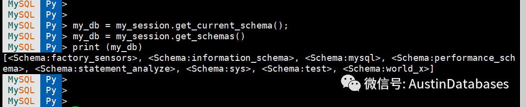 在MYSQLShell 的操作中可以通过python的代码来控制我们的数据库服务器系统,实际上我们通过X DEVAPI 来控制和掌握MYSQL 数据库系统。通过这个方法可以更有效的控制数据库中的关系数据类和方法,以及处理JSON文档对象。mysqlshell 提供了众多的操作数据库的函数来在py的环境下操作数据库,方便了开发者。