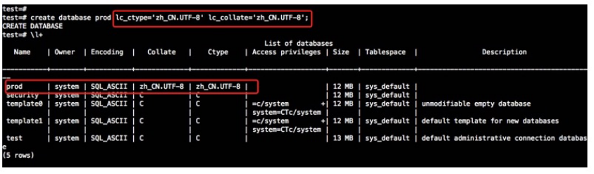 对于LC_CTYPE和lLC_COLLATE参数的配置,可以从initdb创建数据库时在database cluster层面指定;也可以在单独create database时指定数据库层面的配置,本案例从两个层面介绍以上参数的配置。