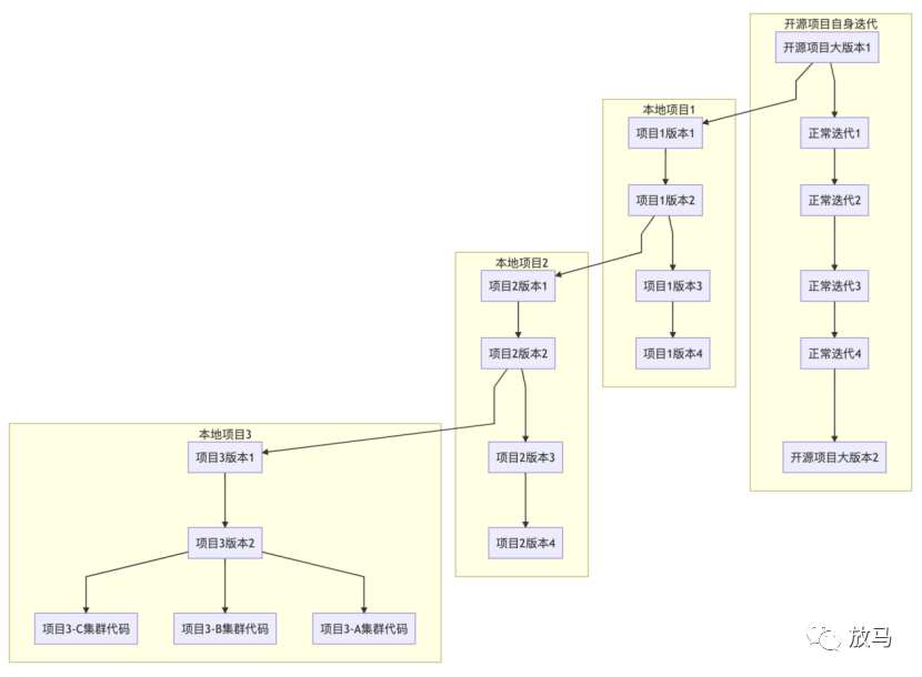 随着需求的增加,各种维护人员东改改西改改,原来的开源项目被改的面目全非,再也无法和上游合并。