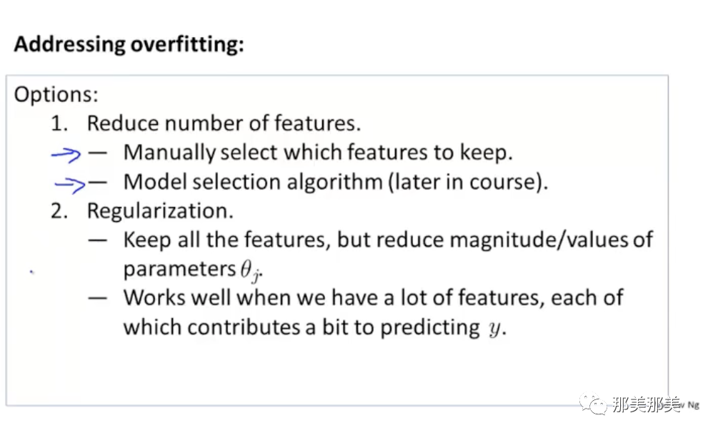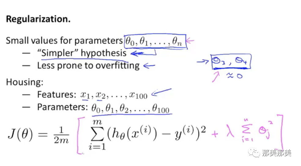 2. 正则化来进行实现. 我们保留所有特征,但减少样本的数量级𝝷j的大小.