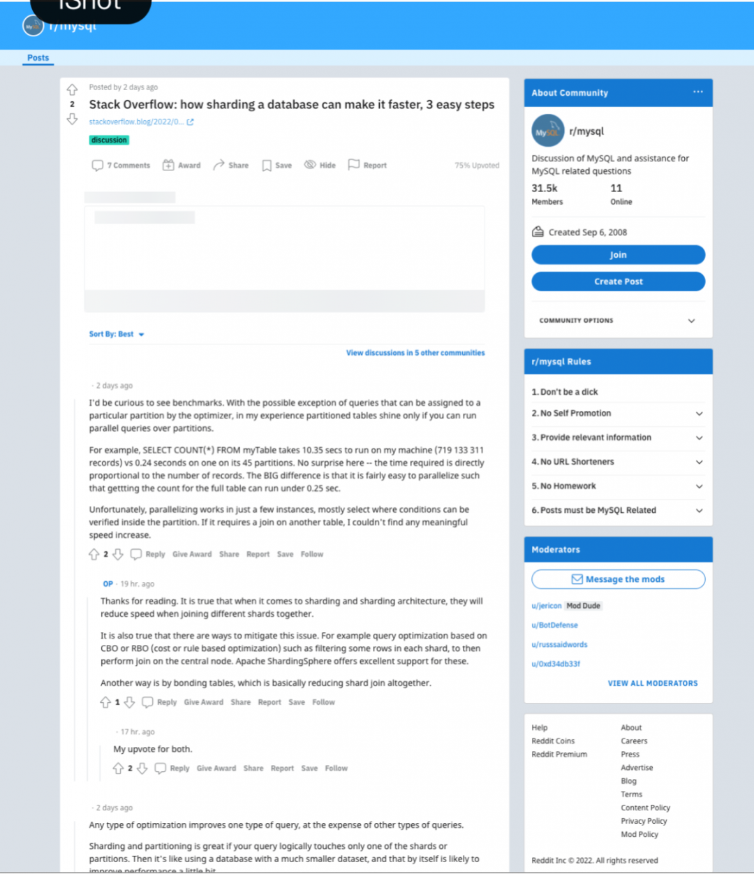 在海外知名技术社区 Reddit 上,MySQL 社区有开发者针对该文展示的 Sharding 技术进行探讨,并对 ShardingSphere 的相关技术表示好奇。