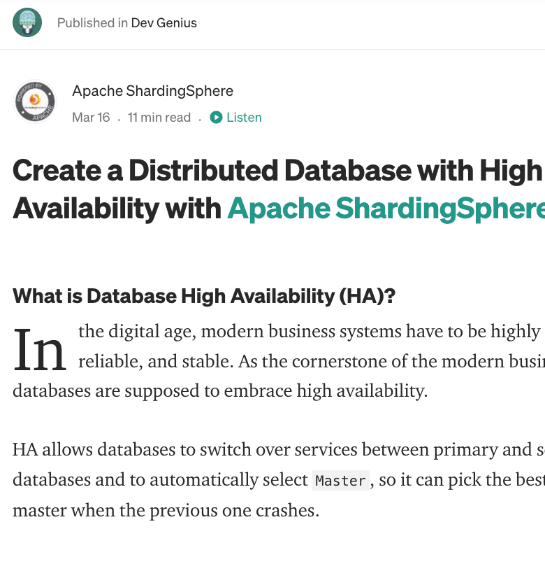 Apache ShardingSphere & Dev Genius