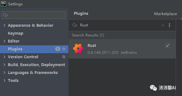 打开Clion后先检查一下Setting->Plugins里有没有安装Rust插件: