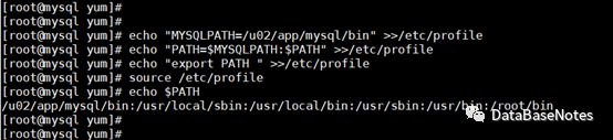 echo "export MYSQLPATH=/u02/app/mysql/bin">>/etc/profile