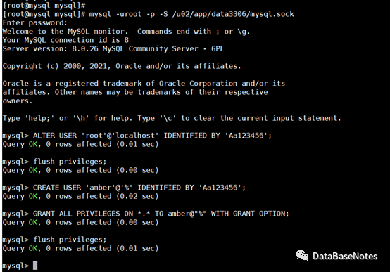 mysql -uroot -p -S u02/app/data3306/mysql.sock