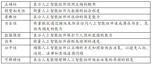 人工智能系统本身也是软件,应适用经典的软件质量特性,即有效性、效率、满意度、无风险性和上下文覆盖率,以及系统/软件产品质量的功能适用性、性能效率、兼容性、可用性、可靠性、安全性,可维护性和可移植性。