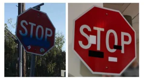 图2 通过在路标上粘贴贴纸攻击目标检测系统
